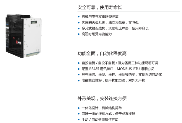 ●機構設計機械與電氣雙重聯鎖,防止兩路電源同時接通,動作準確,安全 | |