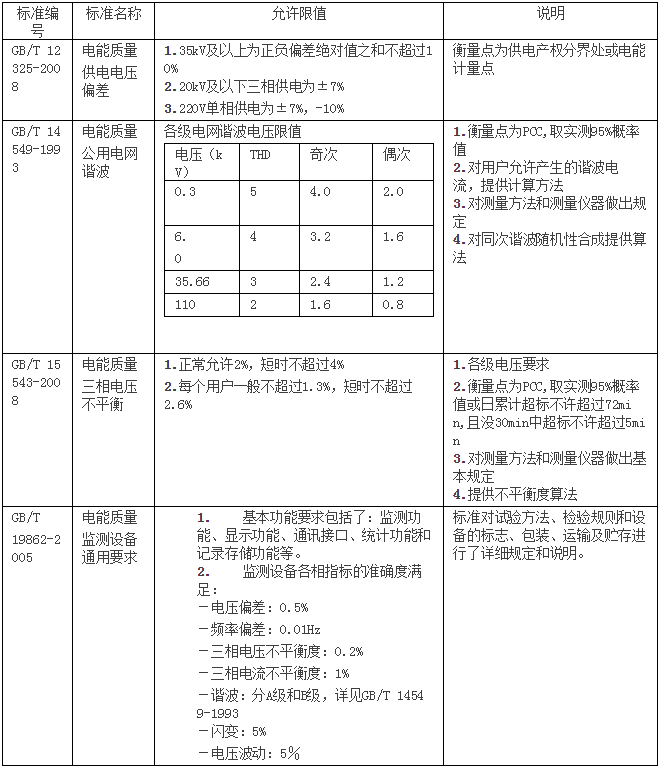 有表1可知,電能質(zhì)量主要包括:電壓偏差、頻率偏差、三相電壓不平衡、諧波、間諧波、電壓波動和閃變、暫時過電壓和瞬態(tài)過電壓,供用雙方需按標準買賣電產(chǎn)品,同時用戶不應(yīng)污染電網(wǎng)。