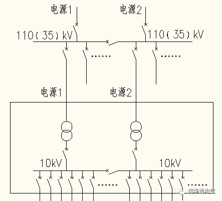 c)電源2正常情況下不工作,但處于冷備用狀況,全部負荷也由電源1負荷。