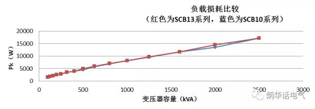 圖1 SCB10、SCB13系列變壓器負載損耗對比
